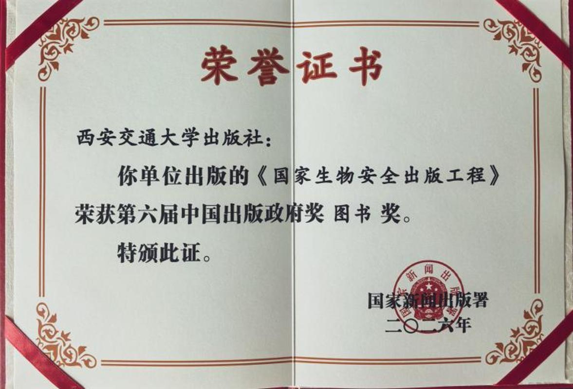 中国出版政府奖每三年评选一次,旨在表彰和奖励国内新闻出版业优秀出版物、出版单位和个人。本届中国出版政府奖共有60种图书获图书奖。《国家生物安全出版工程》的获奖,既是对西安交通大学出版社学术出版能力的充分肯定,更彰显了西安交通大学深厚的学术积淀与前瞻视野。